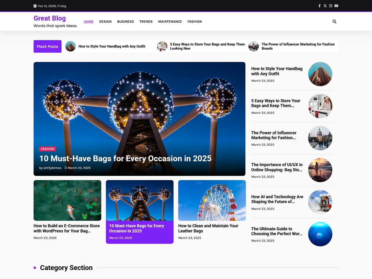 Great Blog is a modern, lightweight, and fully customizable WordPress theme crafted for professional bloggers. Whether you’re sharing fashion, lifestyle, travel, food, or photography content, this theme offers blazing-fast performance, complete responsiveness, and seamless accessibility on any device. It’s mobile-optimized, cross-browser compatible, and translation-ready—making it easy to build a unique and engaging blog that stands out.