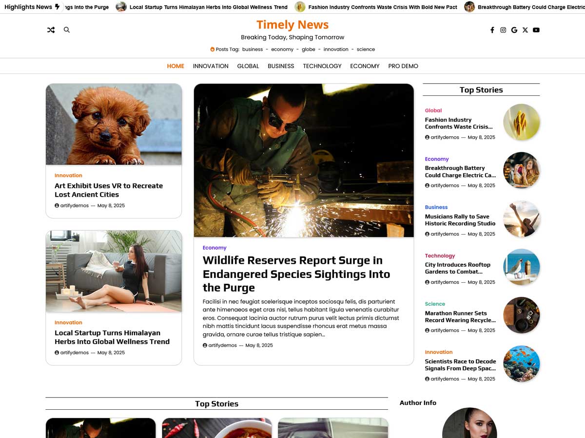 Timely News is a modern, versatile WordPress theme designed for professional bloggers. Lightweight yet highly customizable, it’s an ideal choice for niches such as fashion, lifestyle, travel, food, and photography. The theme is fully responsive, mobile-friendly, and optimized for speed and accessibility. With cross-browser support and translation-ready functionality, it delivers a smooth, consistent experience for bloggers and readers across all devices and languages.